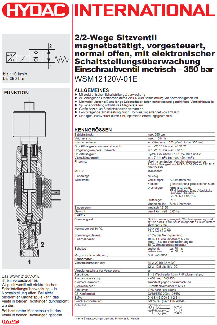 WSM12120-01E-C-N-24DG,WSM12120-01E-C-N-230AG,HYDAC電磁2/2方向座閥