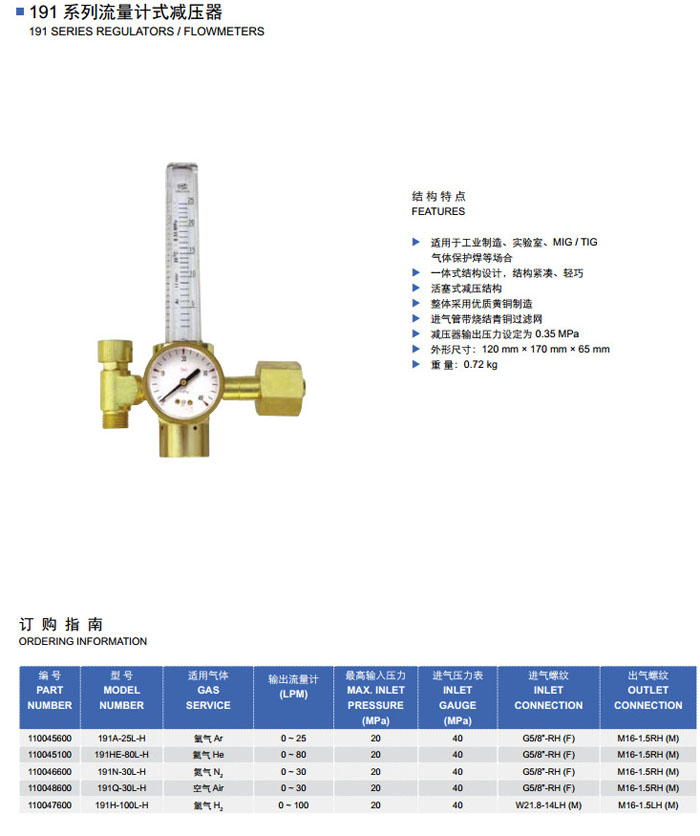 191A-25L-H,191HE-80L-H,191N-30L-H,191Q-30L-H,191H-100L-H,流量計式減壓器 |