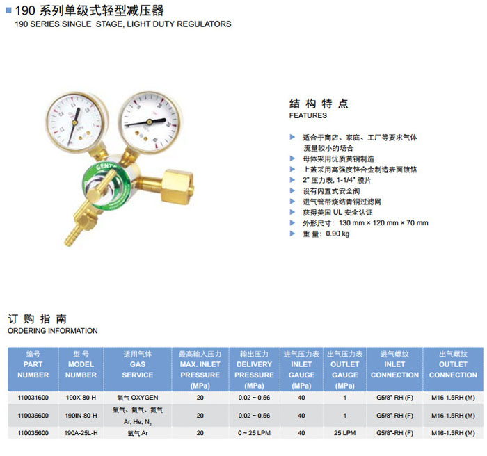 190X-80-H,190IN-80-H,190A-25L-H,單級(jí)式輕型減壓器