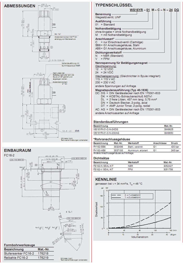 WS16YR-01-C-N-24DG,WS16YR-01-C-N-230AG,HYDAC電磁2/2方向座閥