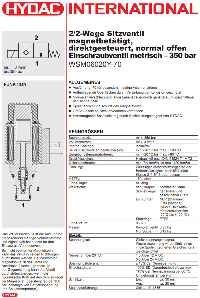 WSM06020Y-70-C-N-12DG,WSM06020Y-70-C-N-24DG,WSM06020Y-70-C-N-230AG,HYDAC電磁2/2方向座閥 |