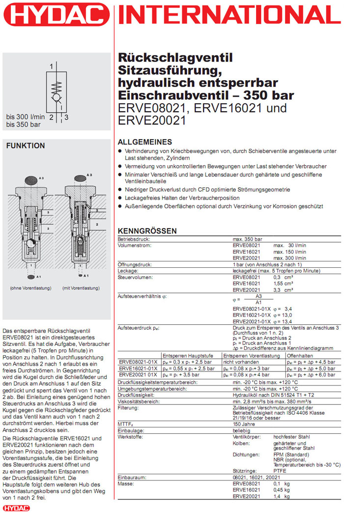 | ERVE08021-01-C-V-3.4-1,ERVE16021-01-C-V-13-1,ERVE20021-01-C-V-13.4-1,HYDAC止回閥 |