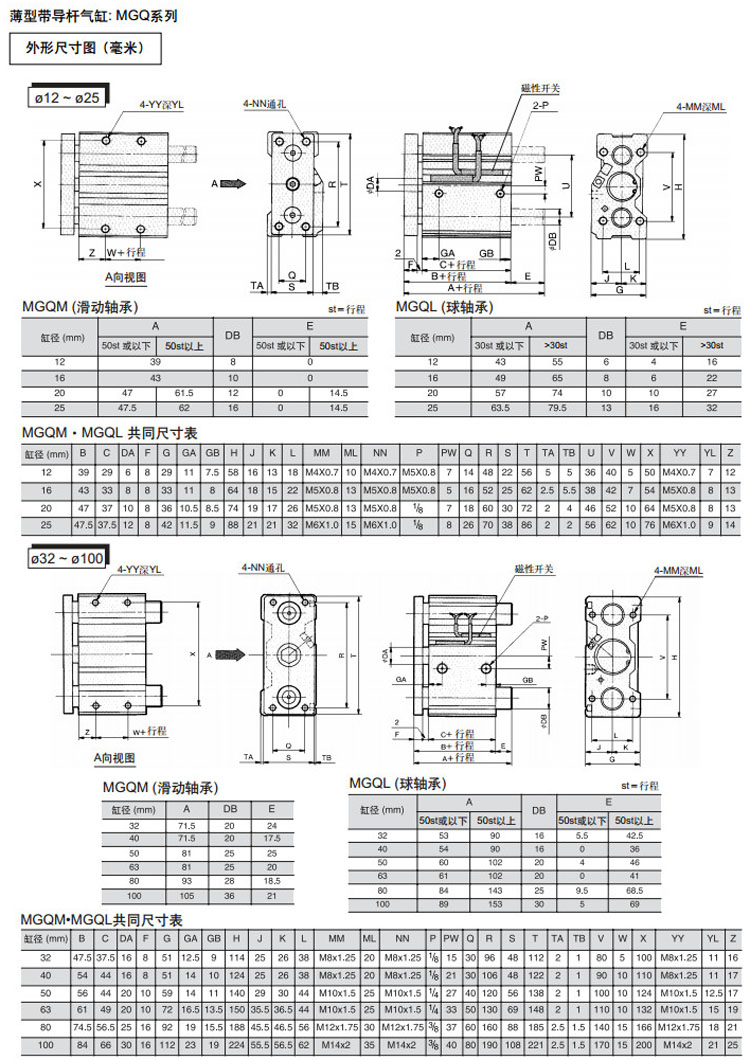 MGQL20-150,MGQL20-175,MGQL20-200,MGQL25-20,MGQL25-30,MGQL25-40,MGQL25-50,MGQL25-75,MGQL25-100,