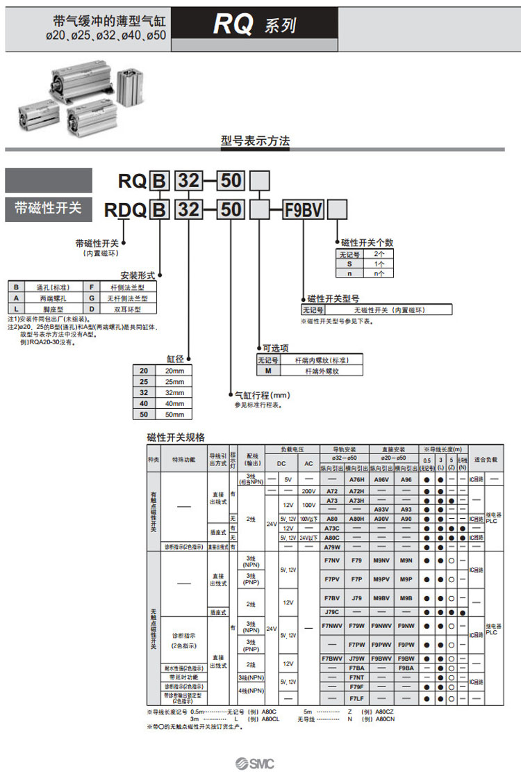 RQB20,RQL20,RQF20,RQG20,RQD20,RQA32,RDQB20,RDQL20,RDQF20,RDQG20,RDQD20,RDQA32,SMC薄型氣缸