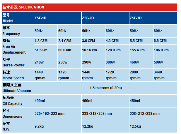 ZSF-1D,ZSF-2D,ZSF-3D,無油煙真空泵