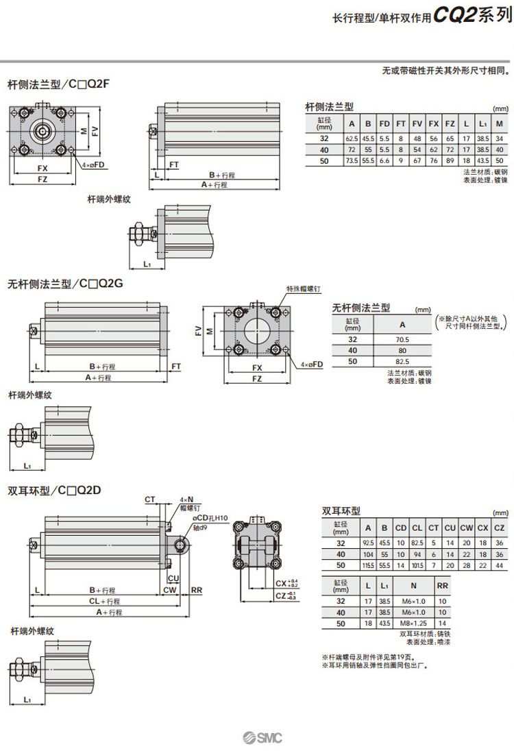 CQ2A32,CQ2L32,CQ2F32,CQ2G32,CQ2D32,CDQ2A32,CDQ2L32,CDQ2F32,CDQ2G32,CDQ2D32,SMC長行程型氣缸