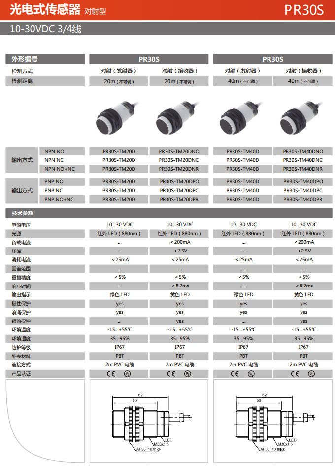 PR30S-TM20D,PR30S-TM20DNO,PR30S-TM40D,PR30S-TM20DNC,PR30S-TM20DNR,PR30S-TM20DPO,光電式傳感器