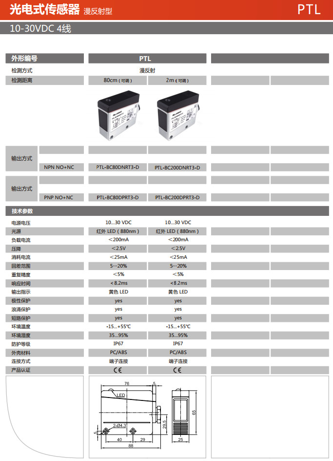 PTL-BC80DNRT3-D,PTL-BC200DNRT3-D,PTL-BC80DPRT3-D,PTL-BC200DPRT3-D,光電式傳感器
