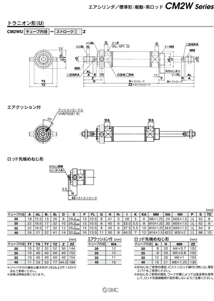 CM2WB,CM2WL,CM2WF,CM2WU,CM2WHB,CM2WHL,CM2WHF,CM2WHU,CM2WHL40-25,SMC標準型氣缸