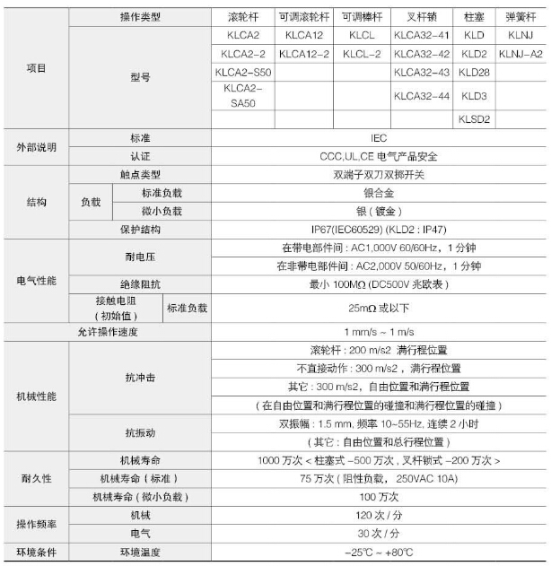 KLCA2,KLCA12,KLCL,KLCA32-41,KLD,KLNJ,KLCA2-2,KLCA12-2,KLCL-2,KLCA32-42,KLD2,KLNJ-A2,Koino限位開關(guān)