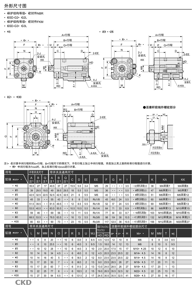 SSD-G2-16-5,SSD-G3-16-10,SSD-G2L-16-10,SSD-G3L-16-20,CKD超緊湊型氣缸