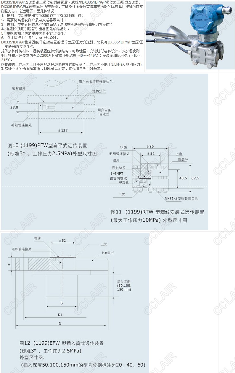 DX3351DP4E,DX3351DP5E,DX3351DP6E,DX3351DP7E,DX3351DP8E,DX3351DP4S,DX3351DP5S,DX3351DP/GP帶遠(yuǎn)傳裝置的差壓/壓力變送器