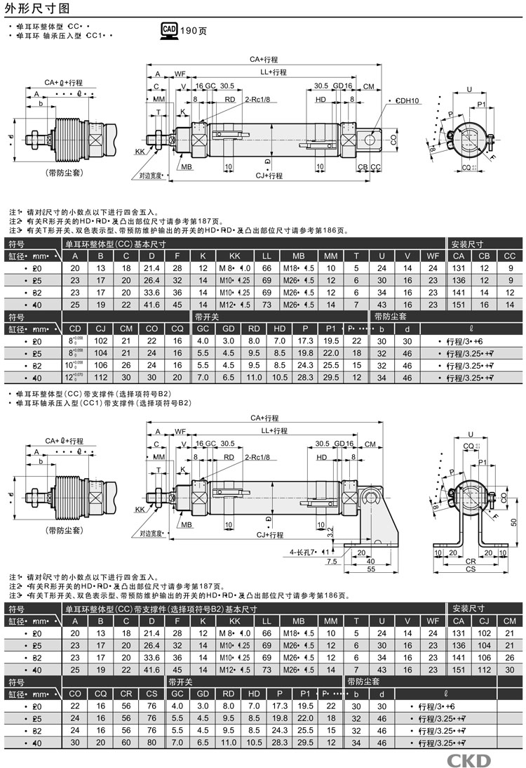 CMK2-F-00-20-25,CMK2-F-00-20-50,CMK2-F-00-20-75,CMK2-F-00-20-100,CMK2-F-00-20-150,CKD緊固型氣缸
