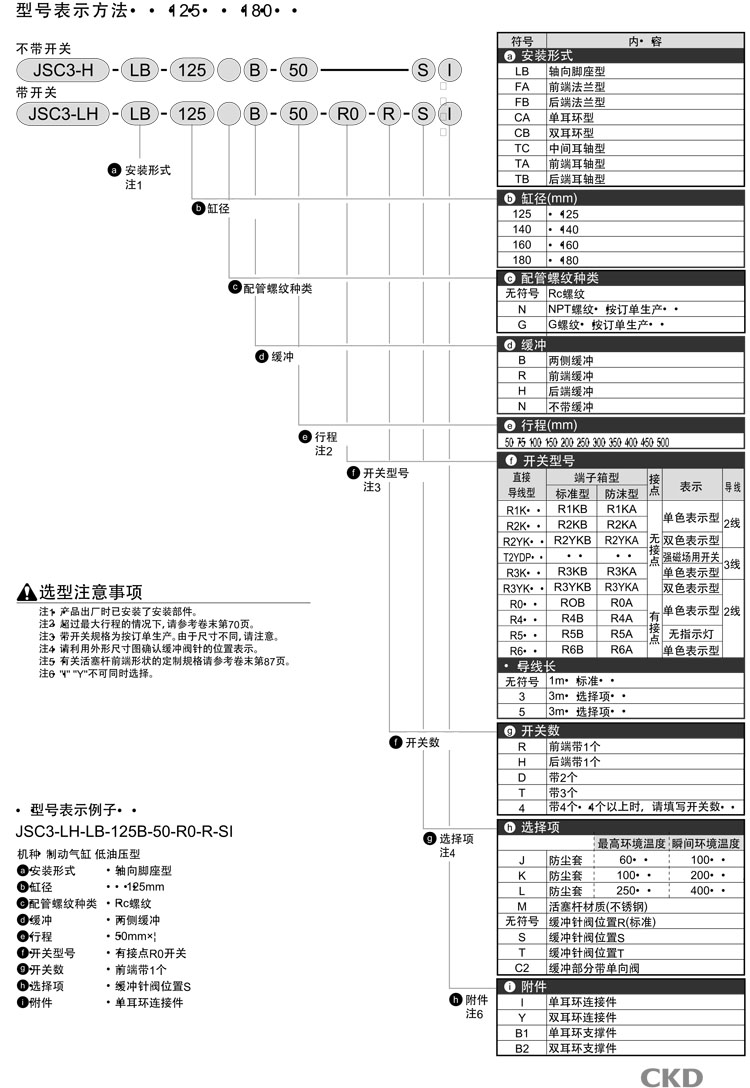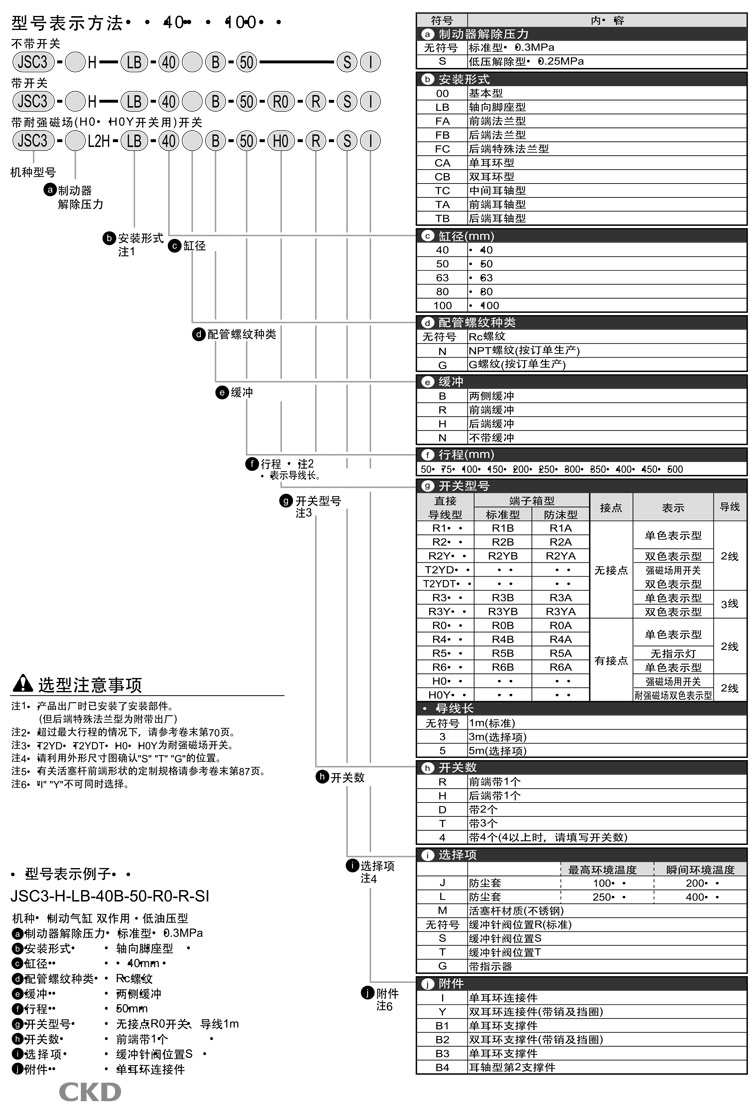 JSC3-H-00-40B,JSC3-SH-00-40B,JSC3-L2H-00-40B,JSC3-SL2H-00-40B,CKD制動氣缸