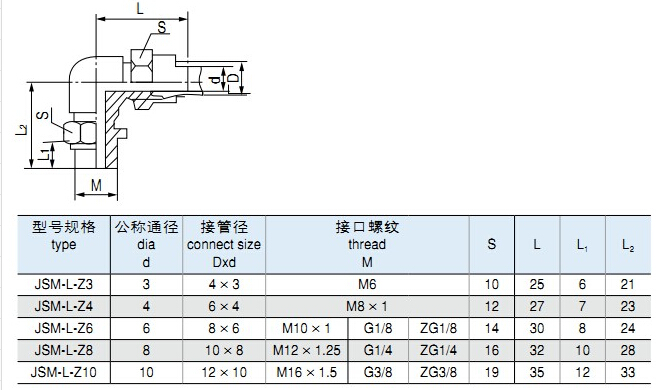 JSM-L-Z3,JSM-L-Z4,JSM-L-Z6,JSM-L-Z8,JSM-L-Z10,鎖母式直角終端管接頭