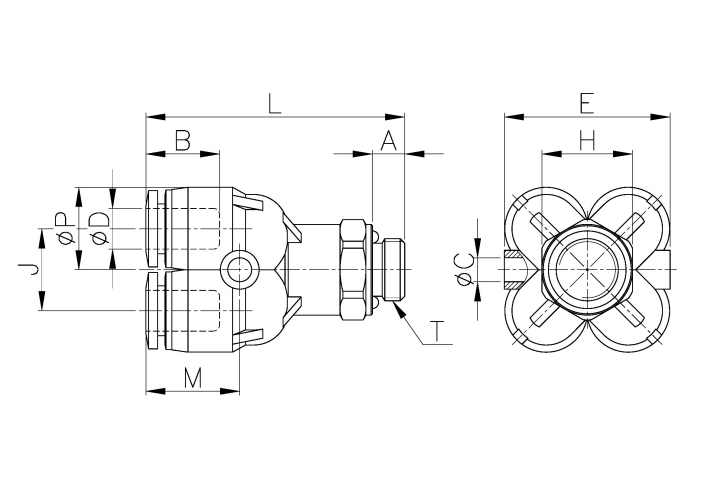 | Model | ∅D | ∅P | T | L | E | J | ∅C | A | B | H(Hex) | ORIFICE | WEIGHT(g) | EA(BOX) |