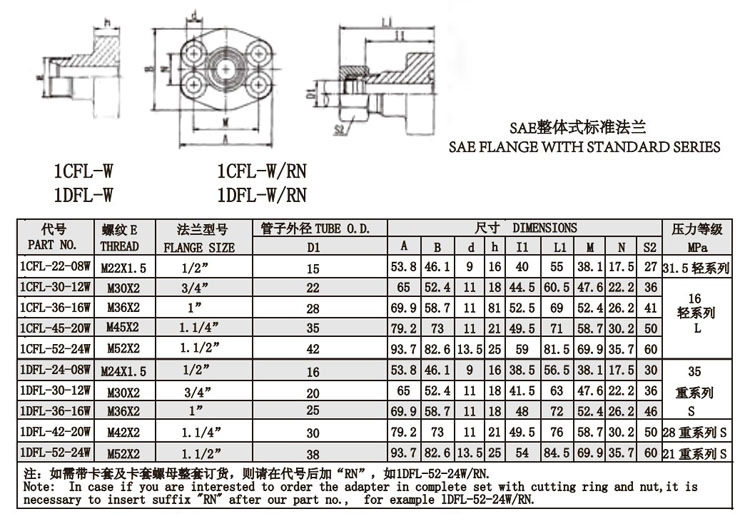 1CFL-22,1CFL-30,1CFL-36,1CFL-45,1CFL-52,1DFL-22,1DFL-30,1DFL-36,1DFL-45,1DFL-52,公制螺紋卡套接頭