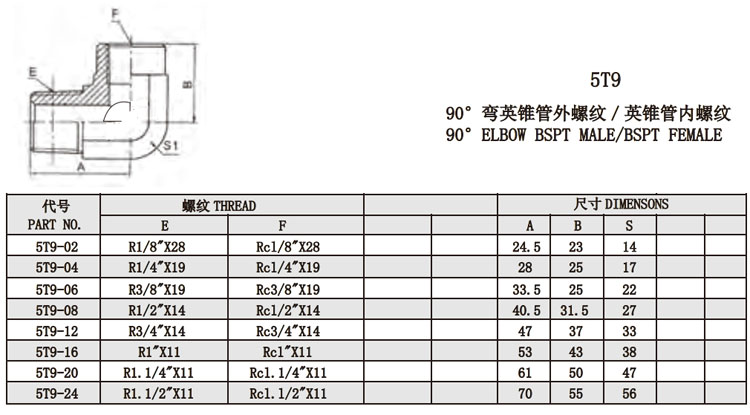 5T9-02,5T9-04,5T9-06,5T9-08,5T9-12,5T9-16,5T9-20,5T9-24,內(nèi)螺紋接頭