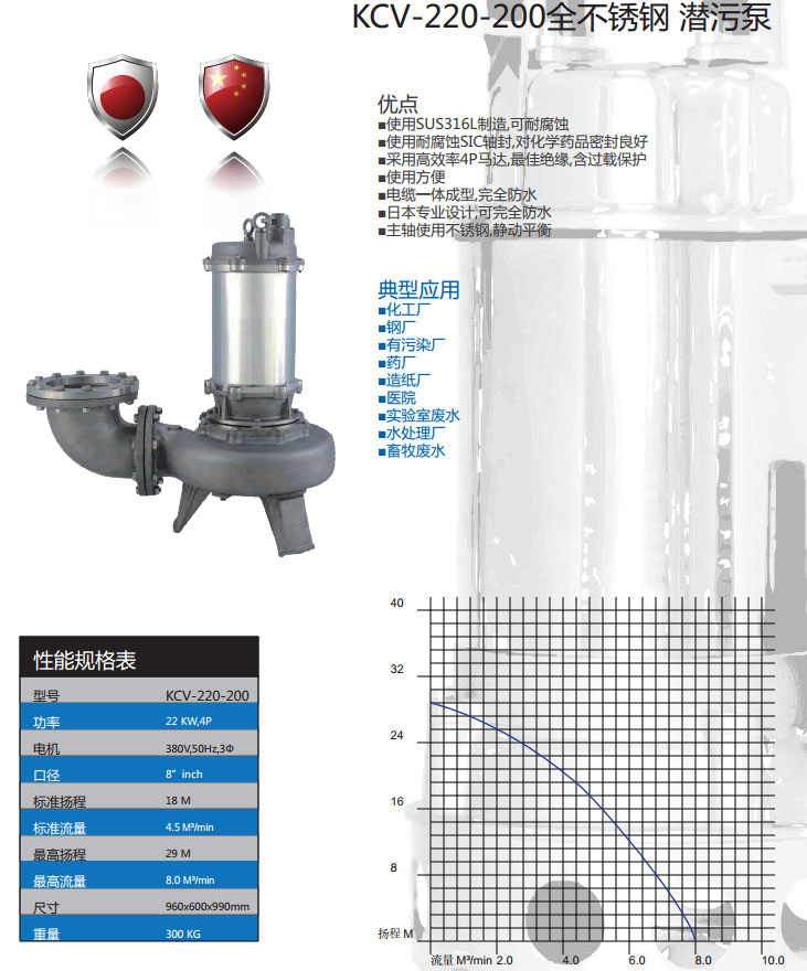 KCV-220-200,全不銹鋼潛污泵