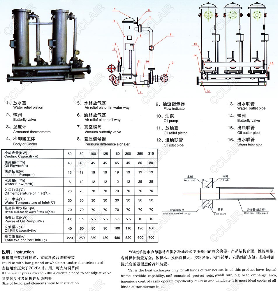 YSI-50,YSI-80,YSI-100,YSI-125,YSI-160,YSI-200,YSI-250,YSI-315,YSI,油水冷卻器