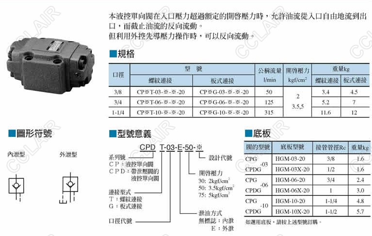 CPT-03-30-20,CPT-10-E-50-20,CPDG-06-30-20,CPG-10-50-20,CPDG-10-E-75-20,液控單向閥YUKEN