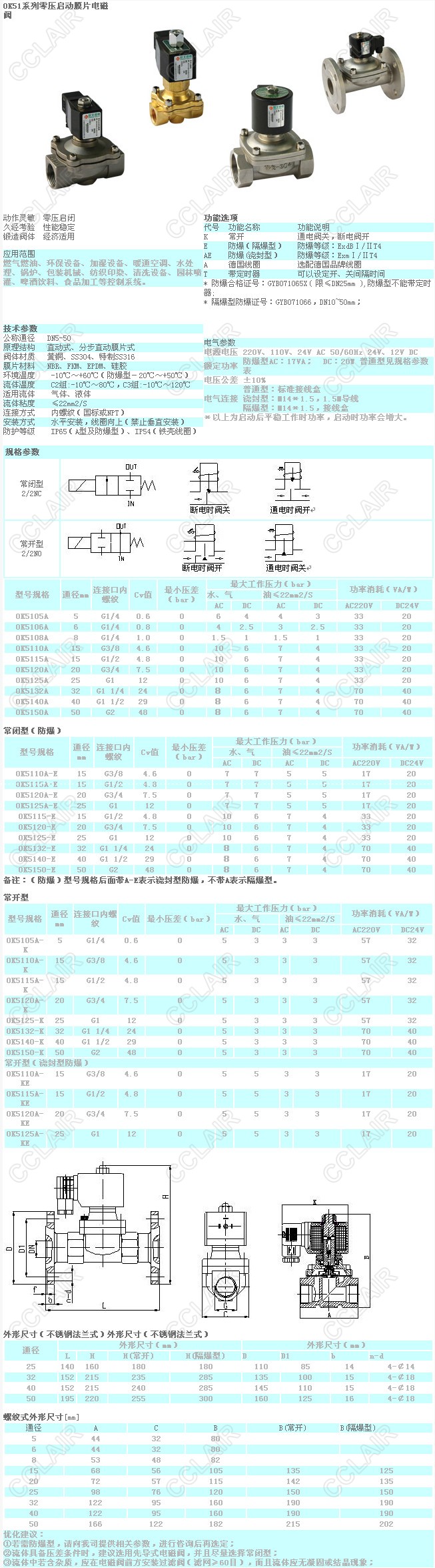 OK5105A,OK5106A,OK5115A-E,OK5120A-K,OK5125A-KE,OK51,零壓啟動膜片電磁閥 |