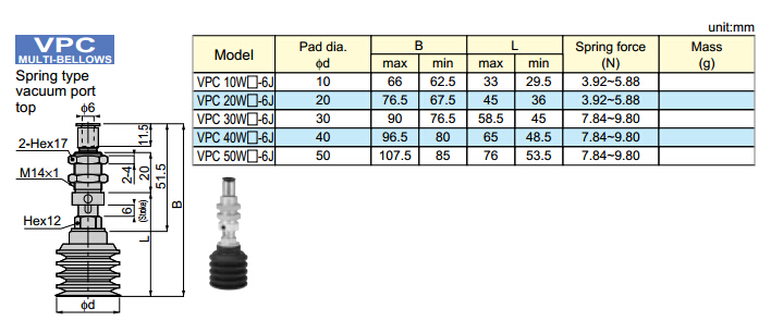 VPA10WN-6J,VPA20WN-6J,VPA30WN-6J,VPA10WS-6J,VPA20WS-6J,VPA40WG-6J,VPA50WG-6J,VPA40WN-6J,PISCO真空吸盤
