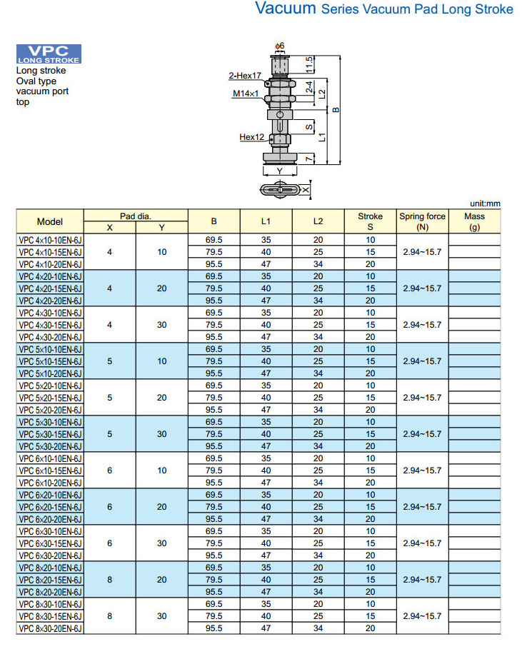 | VPC4×10-10EN-6J,VPC5×10-10EN-6J,VPC6×10-10EN-6J,VPC8×20-10EN-6J,PISCO真空吸盤 |
