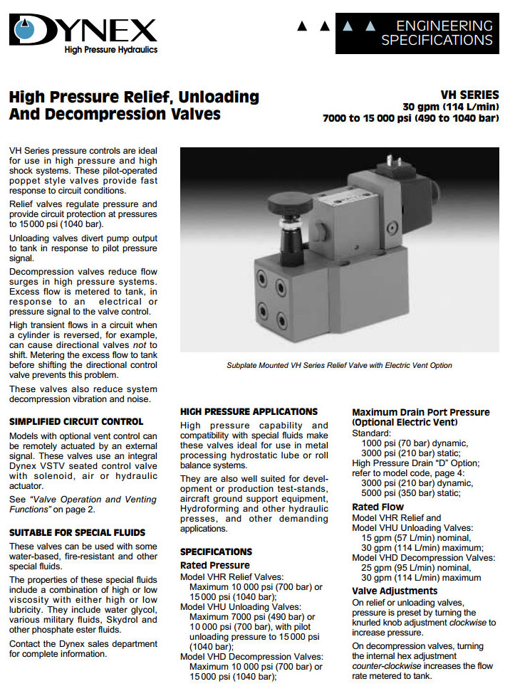 VHR-7,VHR-10,VHR-15,VHU-7,VHU-10,VHU-15,VHD-7,VHD-10,VHD-15,VHR-7L2-A,DYNEX卸荷解壓閥