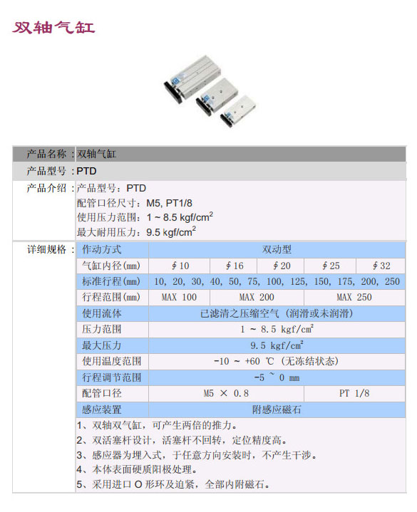 PTD-10*10,PTD-16*10,PTD-20*10,PTD-25*10,PTD-32*10,PTD-10*200,POSU雙軸氣缸