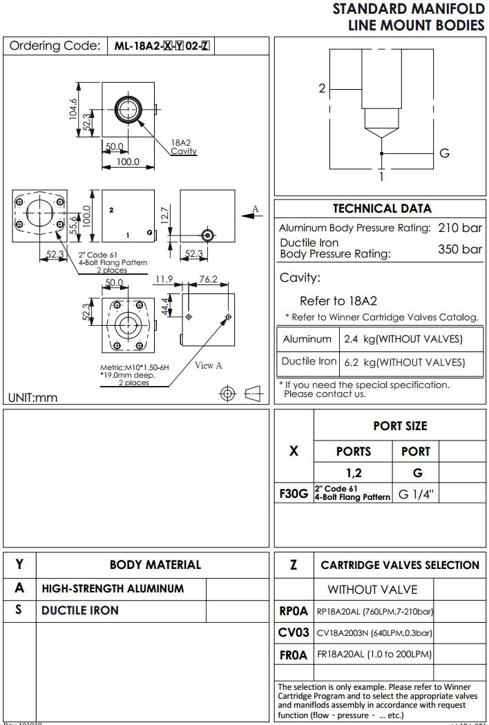 | ML-18A2-F30G-A02-RP0A,ML-18A2-F30G-S02-RP0A,ML-18A2-F30G-A02-CV03,winner標準配管式油路板 |