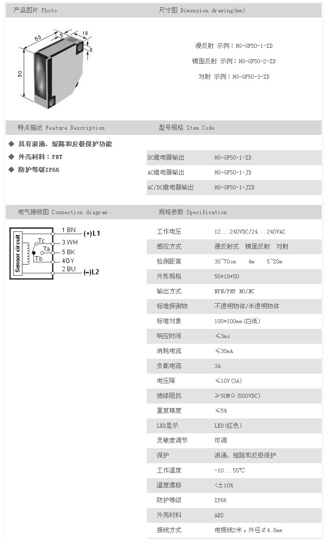 方型光電開(kāi)關(guān)/傳感器 HG-GF50-1-ZD,HG-GF50-1-JD,HG-GF50-1-JZD,