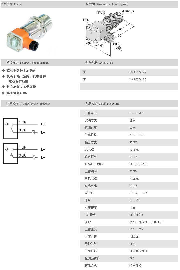 圓柱型接近開關(guān) HG-L30MZ-ZK,HG-L30MA-ZB,