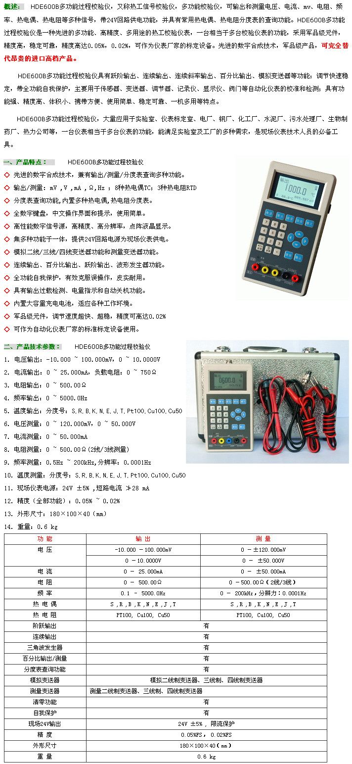 HDE600B,多功能過程校驗儀