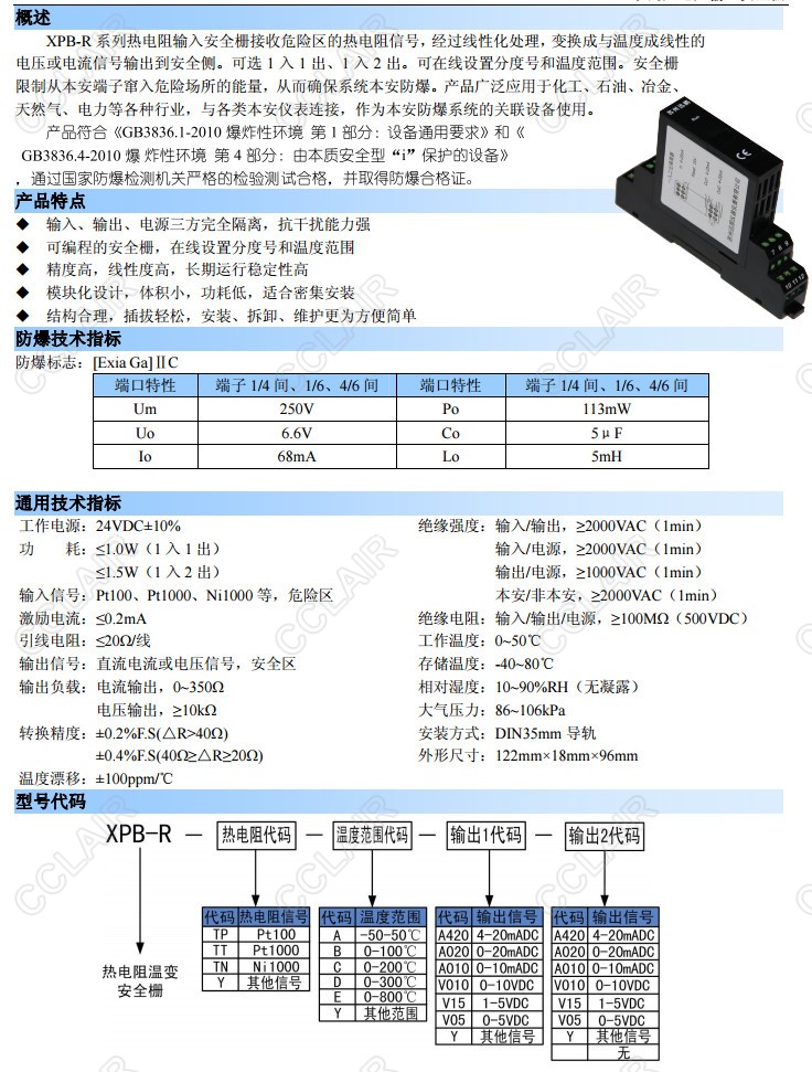 XPB-R-TP-B-A420,XPB-R-TP-Y-A420-A420,XPB-R-TN-Y-2A420,XPB-R,熱電阻輸入安全柵