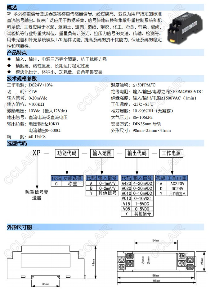 XP-C-B-A420-D,XP-C-A-A020-D,XP-C-B-V010-D,XP-C-B-V15-A,XP-C-B-V05-D,XP,稱重信號變送器