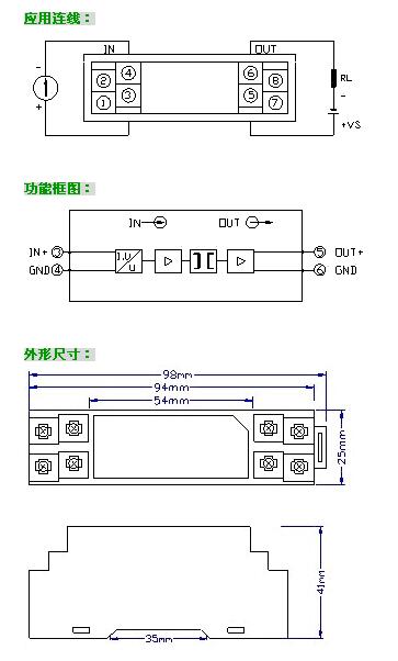 例:輸入4-20mA ;輸出4-20mA,無外供電