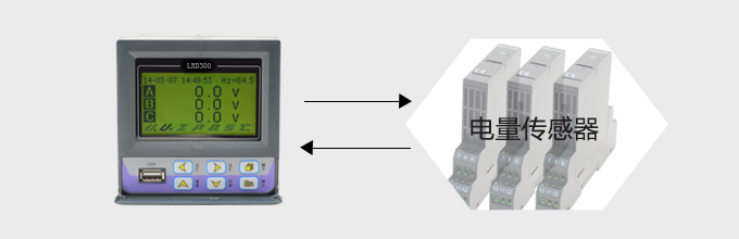 記錄儀與現(xiàn)場儀表的配合使用:配電量變送器,實現(xiàn)測量和記錄現(xiàn)場的電量信號。
