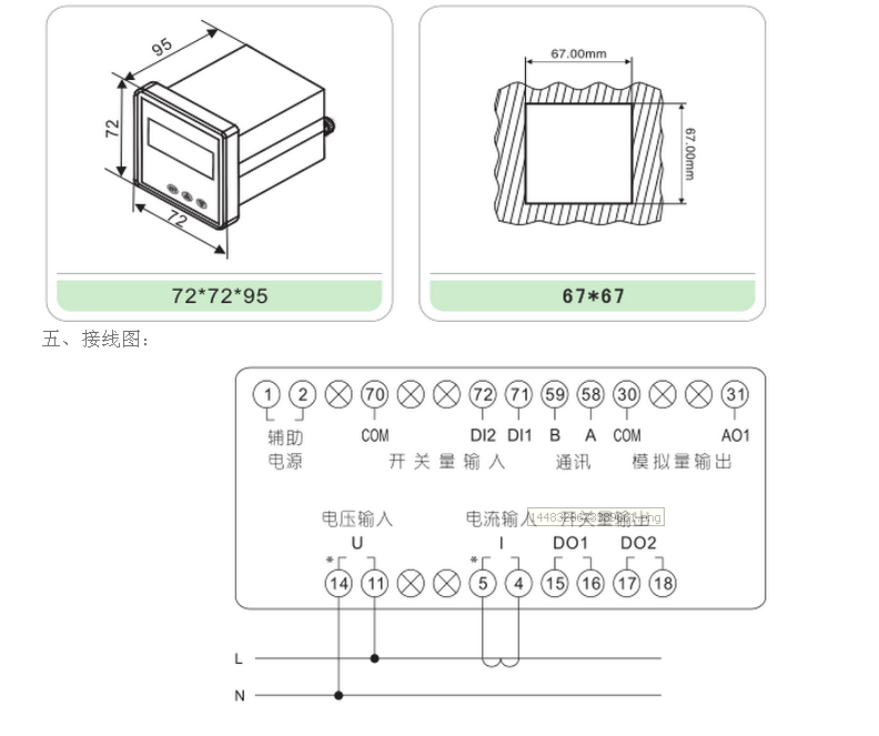 擴(kuò)展:AC5A以上需配電流互感器,AC500V以上需配電壓互感器,現(xiàn)場(chǎng)可編程設(shè)置輸入?yún)?shù)變比。