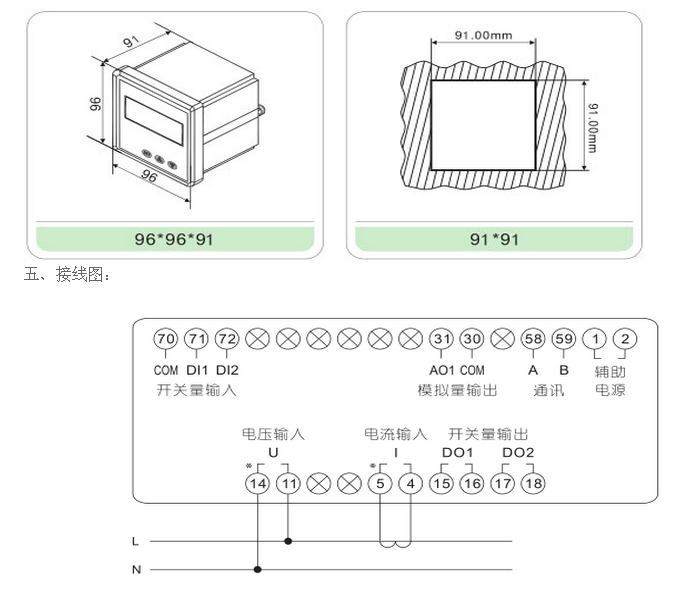 擴(kuò)展:AC5A以上需配電流互感器,AC500V以上需配電壓互感器,現(xiàn)場(chǎng)可編程設(shè)置輸入?yún)?shù)變比。