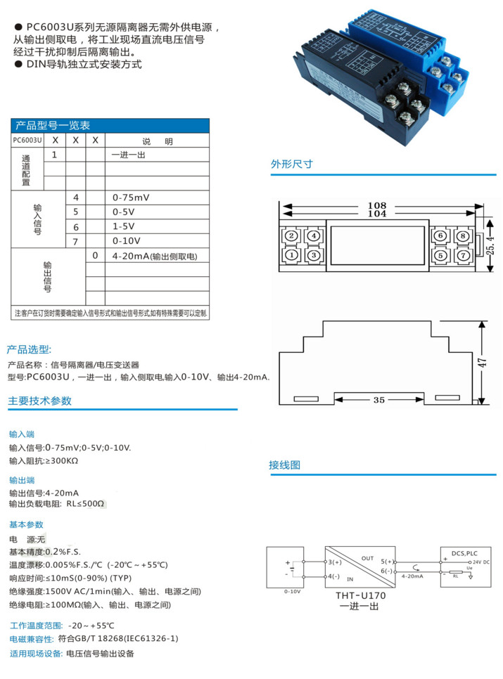PC6003U14,PC6003U15,PC6003U16,PC6003U17,PC6003U,無源電壓輸入隔離器