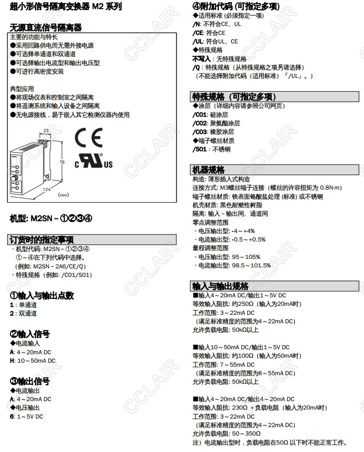 M2SN-1AA,M2SN-2A6,M2SN-1A6/N,M2SN-1H6/CE,M2SN-2A6/CE/Q,M2SN,無源直流信號隔離器