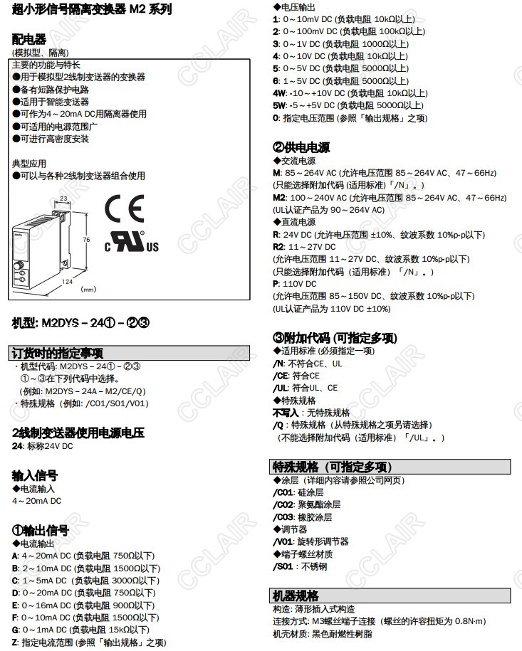 M2DYS-24A-M2,M2DYS-24A-M2/CE,M2DYS-24A-M2/Q,M2DYS-24,M2DYS,信號隔離變換器