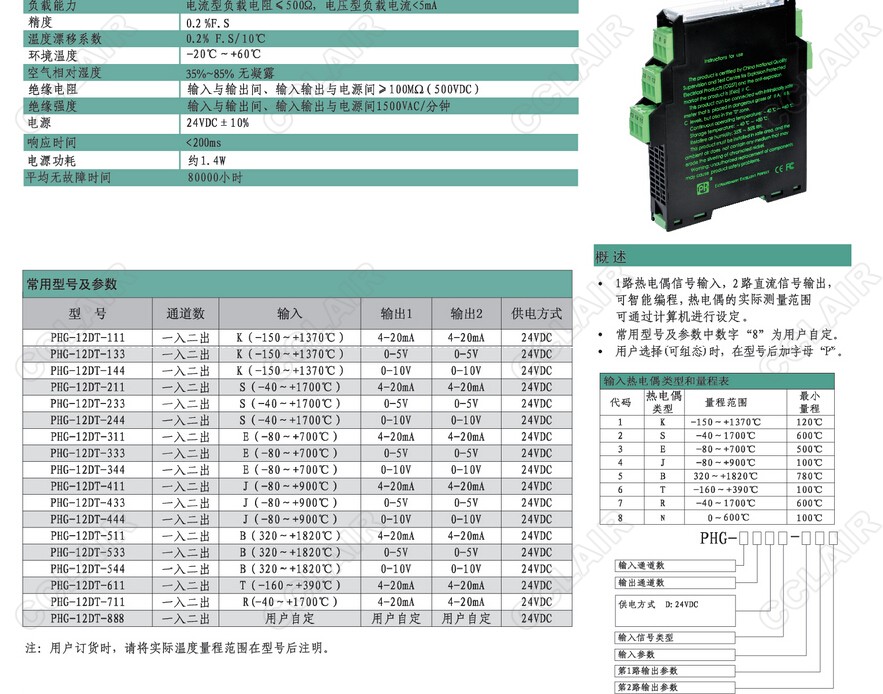 PHG-12DT-611,PHG-12DT-711,PHG-12DT-888熱電偶型信號(hào)隔離分配器