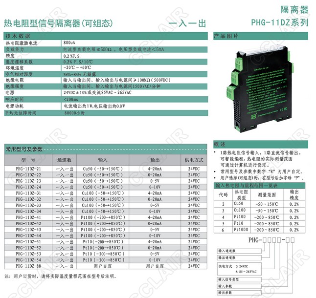 PHG-11DZ-51,PHG-11DZ-52,PHG-11DZ-53,PHG-11DZ-54,PHG-11DZ-88熱電阻型信號隔離器