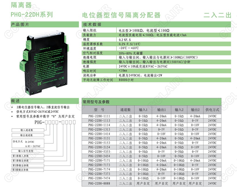 PHG-22DH-7373,PHG-22DH-7474,PHG-22DH-8888電位器型信號隔離分配器