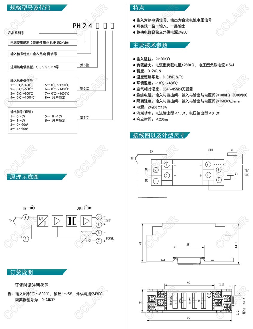 PH24K11,PH24J32,PH24S34,PH24E45,PH24E51,PH24R21,PH24N75,PH-24,熱電偶型信號(hào)隔離器