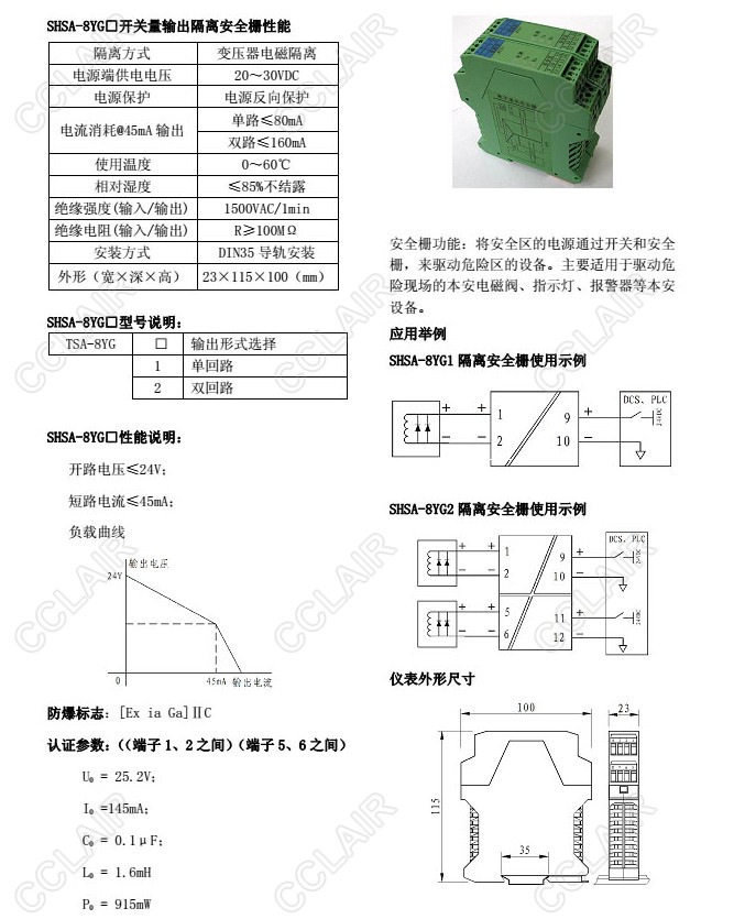 SHSA-8YG1,SHSA-8YG2,SHSA-8YG,開關(guān)量輸出隔離安全柵