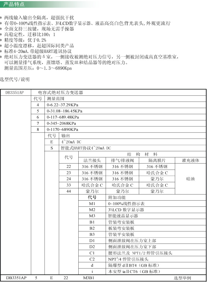 DB3351AP-4,DB3351AP-5,DB3351AP-6,DB3351AP-7,DB3351AP-8,DB3351AP,電容式絕對壓力變送器
