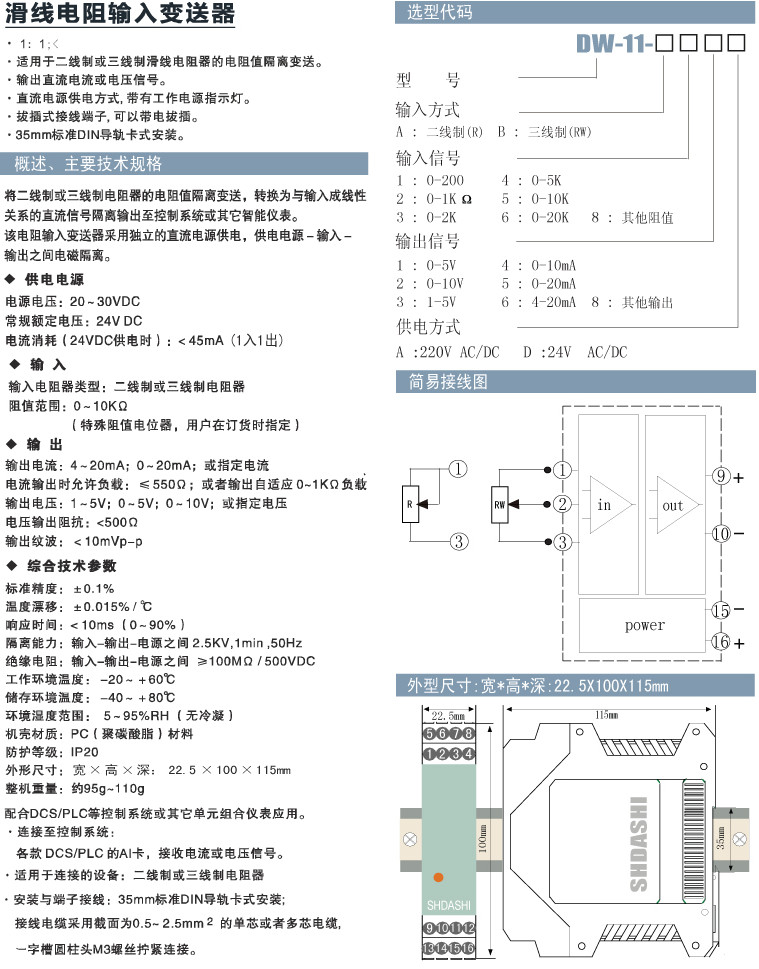DW-11-A1,DW-11-A2,DW-11-A3,DW-11-B4,DW-11-B5,DW-11-B6,DW-11-B8,DW-11,滑線電阻隔離變送器